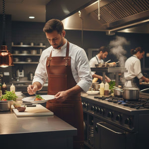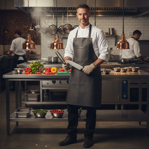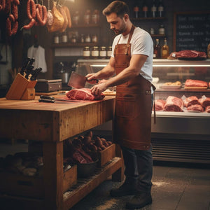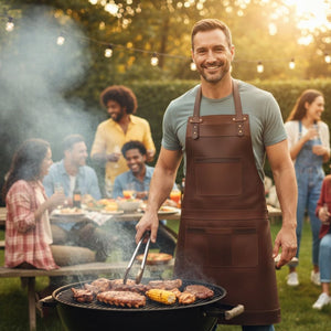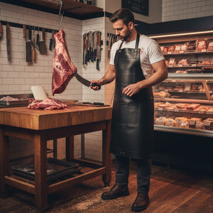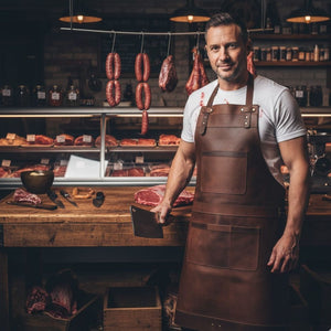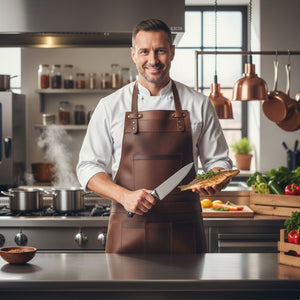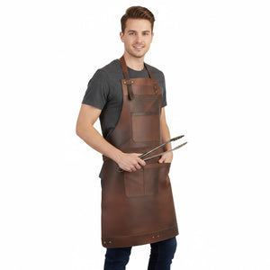 This apron is a top choice for those who adore luxury items. It's crafted from thick (1.3 to 1.5mm) and long-lasting cowhide leather, featuring a rare distressed stonewash appearance that's a gem in real leather. Rest assured, the quality of this apron will exceed your expectations!