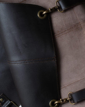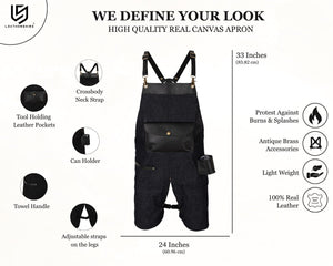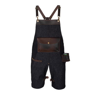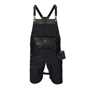 The Devon Black Denim Split Leg Apron with Can Holder Leather Pocket